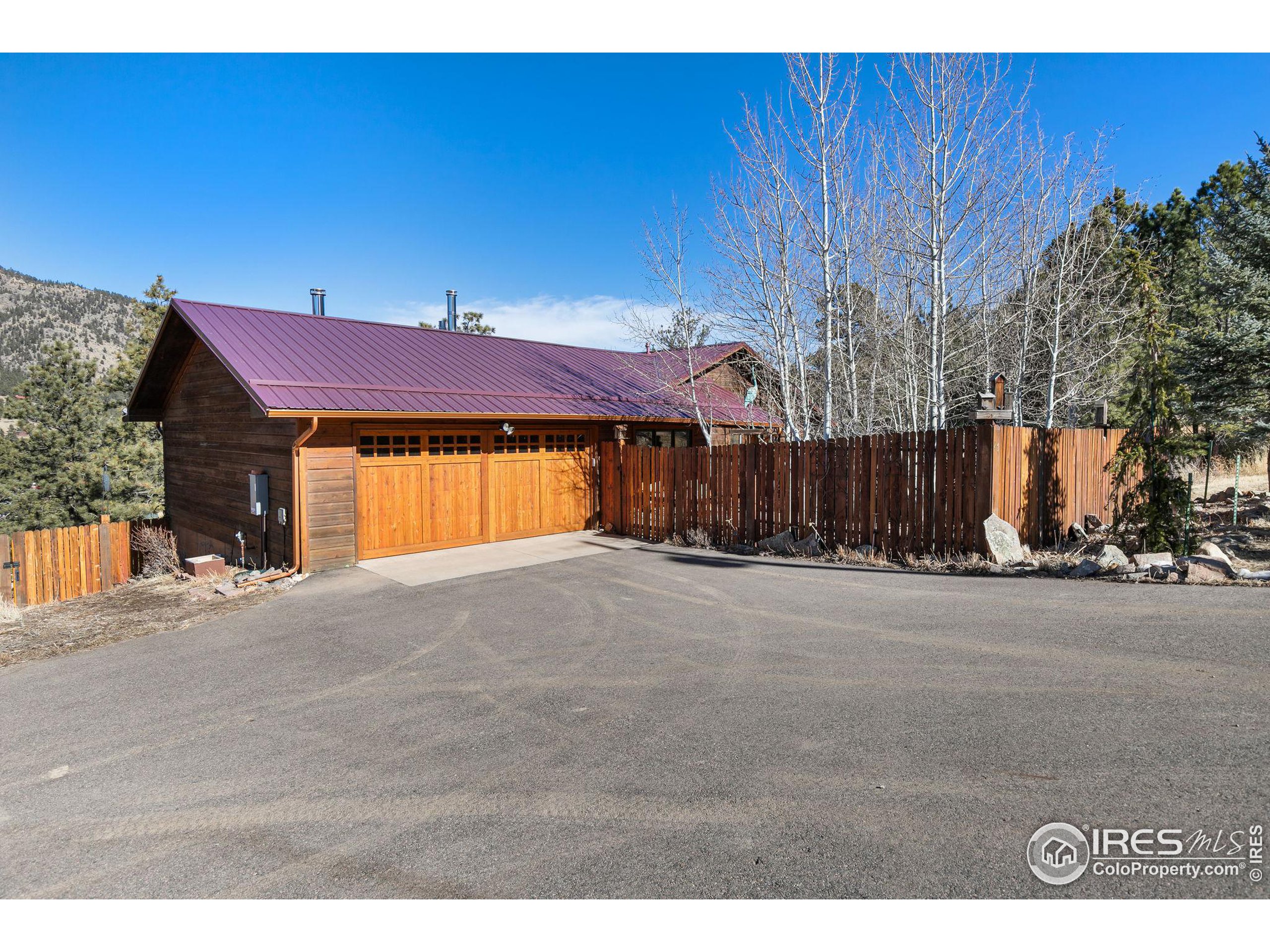 Nestled on a gently-sloping and completely-usable lot up mellow, well-maintained roads in the Goldilocks location of Pinewood Springs, this quiet, beautifully-appointed home provides modern amenities, light-filled, open-concept living, beautiful views & the quintessential mountain experience without sacrificing convenience. Just around 10min. to Lyons, with its unique shops, galleries, fantastic dining & drinking options, entertainment & outdoor recreation (on rivers, trails and mountains)! Just 15-20min. up the hill are Estes Park and all of the activities available in Rocky Mountain National Park. Plus, it's just 30min. to Longmont or Boulder, so you don't have to sacrifice convenience. The Little Thompson River meanders through the community which also has its own private swimming hole ("The Tubs") and picnic area, as well as the Crescent Lake fishing pond which is all managed by a voluntary property owner's association. There's no "HOA." The property offers multiple outdoor spaces and a large, fenced-in backyard with lovey rock formations, extensive landscaping, a seasonal casita (perfect for a studio, workshop, or office), and RV Parking. The paved driveway is easy to maintain with full southern exposure. On the main floor, tucked away from the great room, you'll find a private Primary retreat that looks out to the fenced-in aspen garden filled with perennials and bulbs providing 3-season blooms. The great room offers beautiful views and length of vision as well as access to two different decks that provide exceptional outdoor living. Downstairs you'll find a large den with access to the rear patio area and both other bedrooms. The home also offers the additional comforts of a whole house UV water purification system, as well as a whole-house backup generator. With its convenient location, modern comforts, access to unparalleled natural beauty and outdoor recreation, this home is an ideal retreat for those seeking a balance between serenity and convenience.